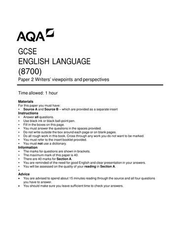 Mark your answers on the separate answer sheet. What do they concern themselves with? Aqa english language paper 2 question 5 writing improving writing grades 7, 8 and 9. This is a model answer for aqa english language paper 2 question 5. What british quality newspapers do you know?